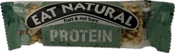 | 7 | Eat Natural Protein Fruit & Nut Bar | Peanuts, Almonds & Salted Caramel | 40g | 10.4g | 198 | 7.9g | 2.2g | Widely available | None | Various | C |