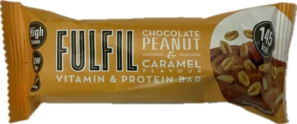 | 4 | Fulfil Vitamin & Protein Bar | Chocolate Peanut & Caramel | 55g | 19.5g | 203 | 2.1g | 3.8g | Widely available | Vitamin C, B1, B2, B3, B5, B6, B9, B12, E | Various | B+ |