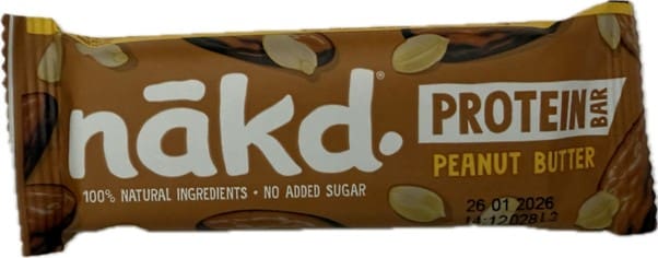 | 9 | Nakd Protein Bar | Peanut Butter | 45g | 7.6g | 189 | 13g | 6.8g | Widely available | None | Various | C- |